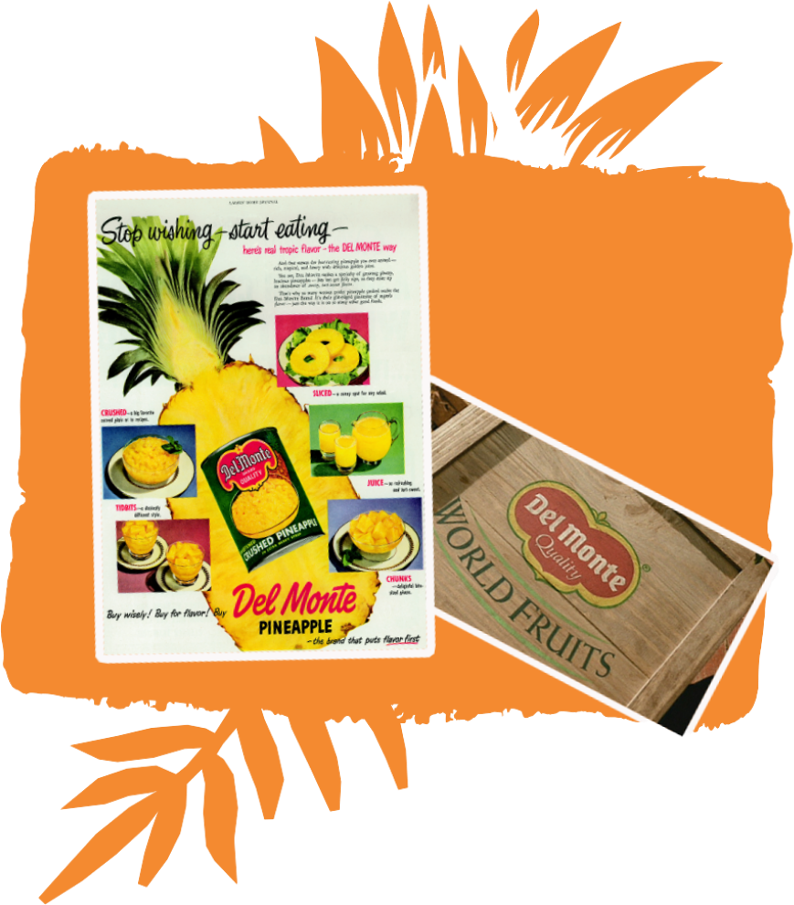 FÖRSTA ANVÄNDNINGEN AV DEL MONTE-NAMNET PÅ EN LIVSMEDELSPRODUKT