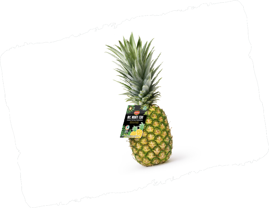 i hela leveranskedjan från jord till bord. Koldioxidutsläppen från DelMontes ananasväxthus kompenseras av återupptag i Fresh Del Montes egna skogar, vilket gör att ananasens koldioxidavtryck är noll.